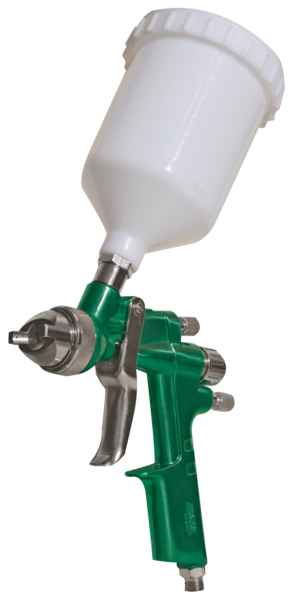 Alto volumen. Baja presi贸n. Ahorra pintura y preserva el medio ambiente. Eficiencia de transferencia superior al 75%. Evita exceso de niebla. Resiste pintura de base acuosa y a base de solvente.